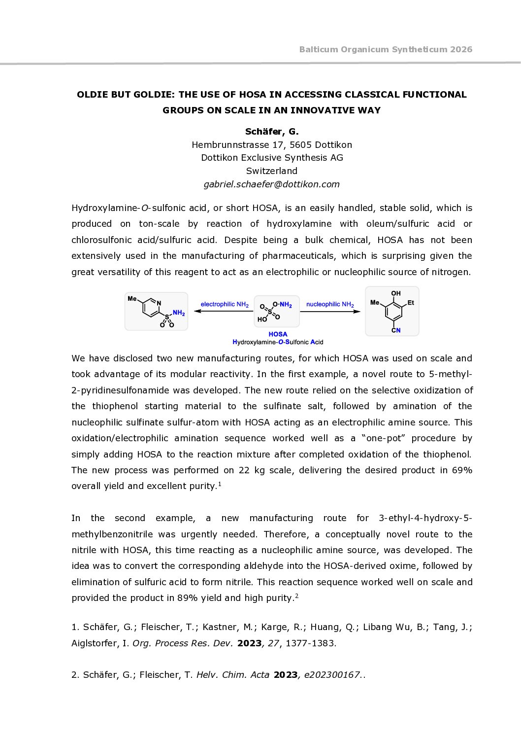 • OLDIE BUT GOLDIE: THE USE OF HOSA IN ACCESSING CLASSICAL FUNCTIONAL GROUPS ON SCALE IN AN INNOVATIVE WAY